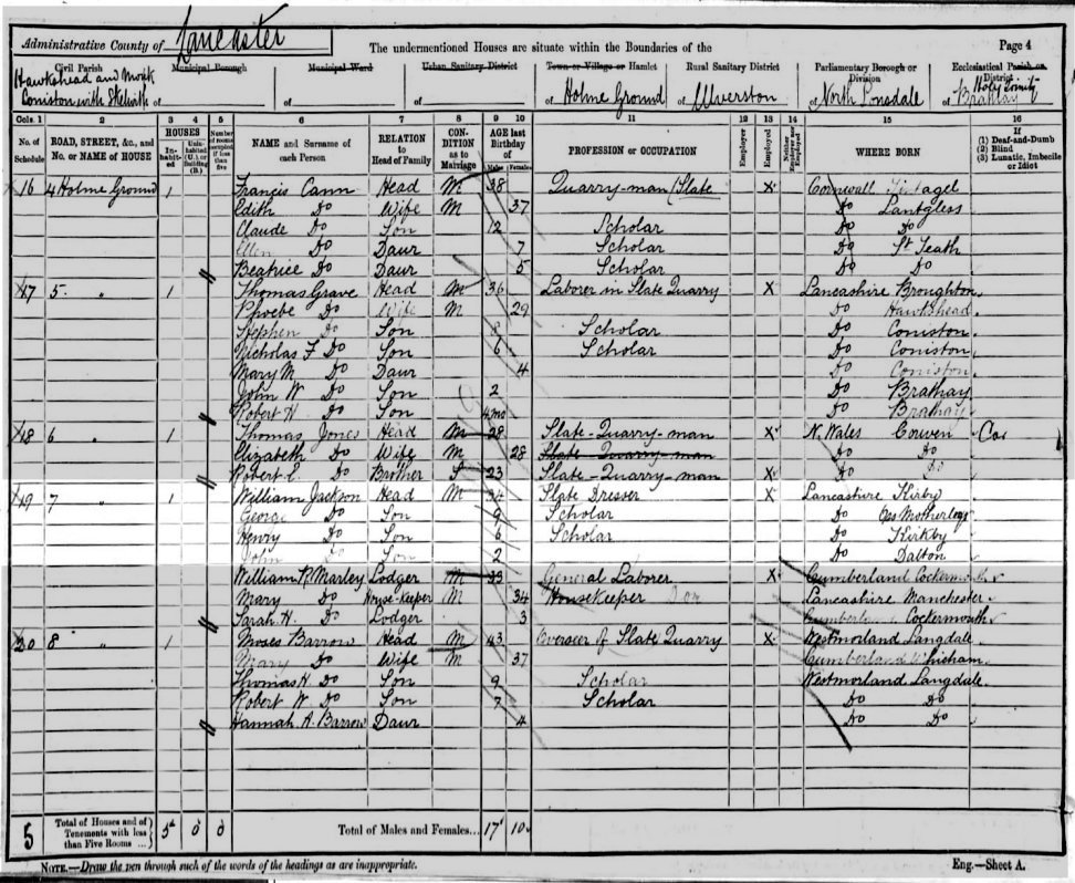 Extract from 1891 Census