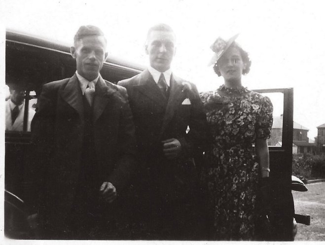 Harold Evans, soon to be married, with future Brother-in-Law and wife