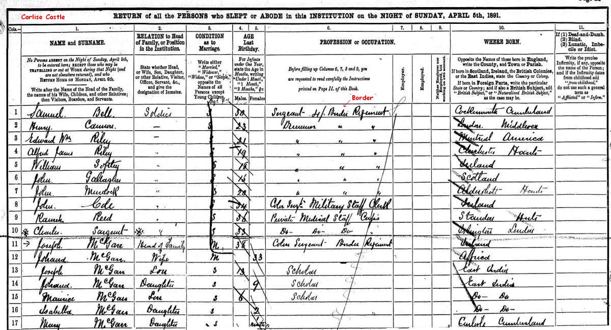 The place is Carlisle Castle where Joseph and family must have been stationed after returning from "East India"